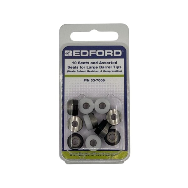 Bedford Precision's Tip Seat & Seal, Large Barrel, Mixed Pack,10 pk is engineered and manufactured to rigid specifications of quality, appearance & performance characteristics. With Bedford parts you can be assured of quality and trouble-free performance.