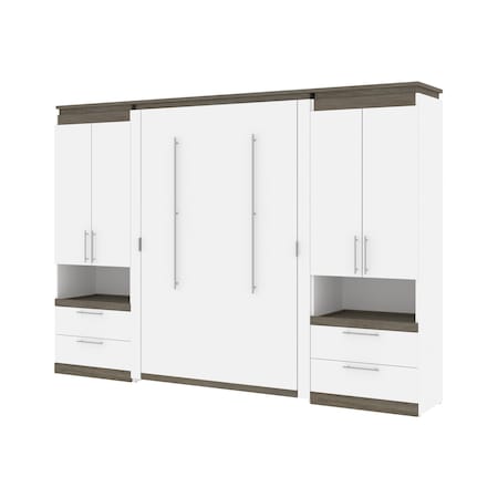 Orion 118W Full Murphy Bed and 2 Storage Cabinets with Pull-Out Shelves (119W), White & Walnut Grey