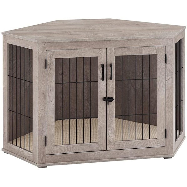 Large Corner Dog Crate Double Doors - Weathered Grey