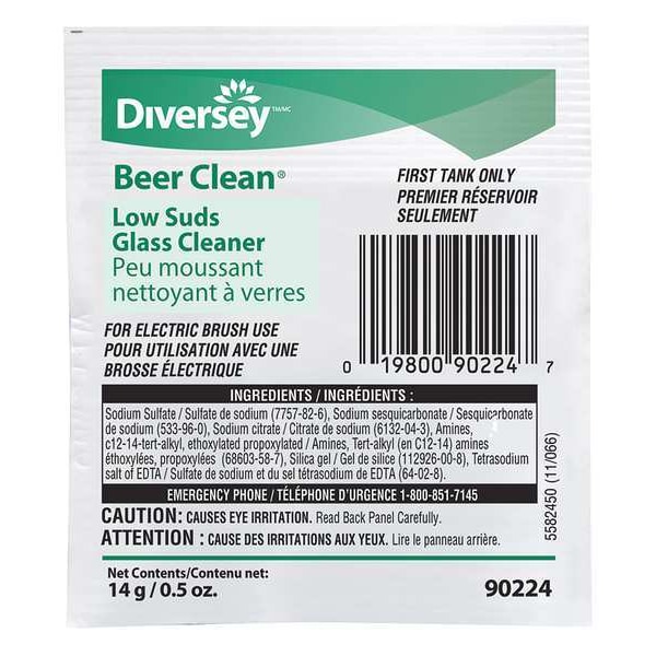 Glassware Cleaner, Washing Type Hand Wash, Container Size 0.5 oz, Ready to Use/Concentrated Concentrated, Fragrance Unscented, Product Series No Series, Cleaner Form Powder, Standards Kosher, Color White, Flash Point Greater Than 200 Degrees F, Maximum RTU Yield per Container 0.5 fl oz, Primary Chemical None, Recommended Dilution 1:768, Package Quantity 100