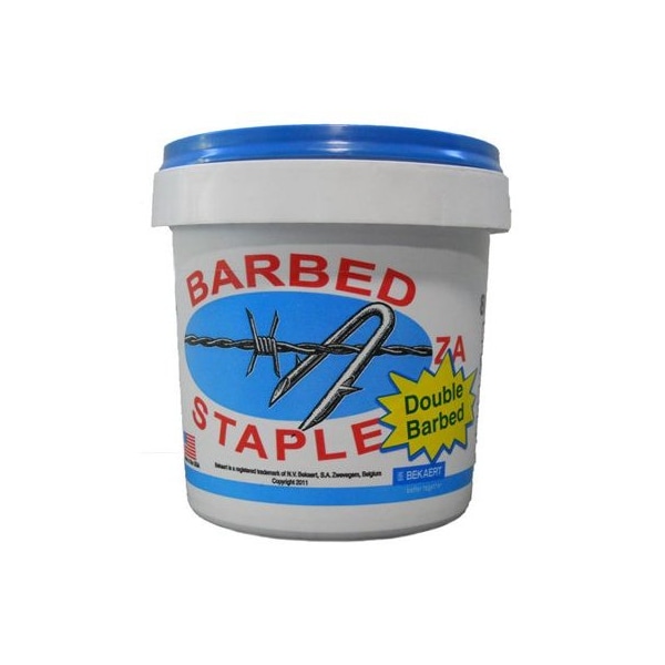 Bekaert, 8 LB, 2 Fence Staples, 8 Gauge Bezinal Coating, Double Barbs To Hold Securely In The Post Have Sharp Right Hand Cut Tips For Easy Driving, Bucket