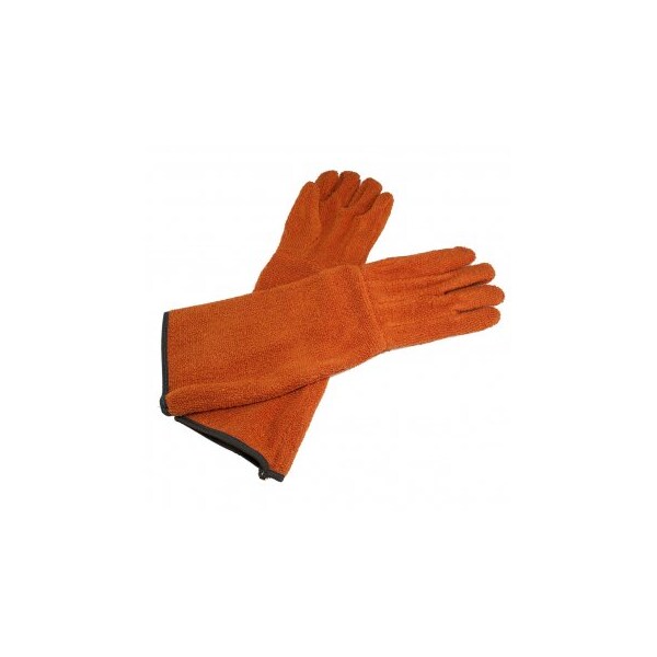 Clavies autoclave gloves provide thermal protection for handling hot objects with a heat resistant up to 450°F. These gloves are fabricated of 100% thick terry cloth and are bright orange in color. One size fits all. Machine washable and air dry. Gloves are not waterproof and should not be used to handle dry ice. CE marked.