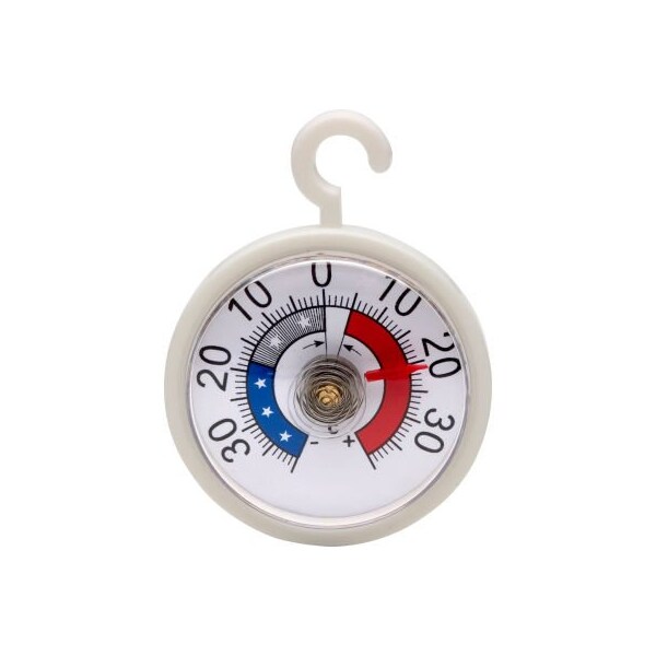 Bi-metal style thermometers indicate temperature within freezers or refrigerators. stainless steel model stands sturdy on rack shelves plastic models have a top hook to hang from shelf rail tested and inspected by our usa quality team