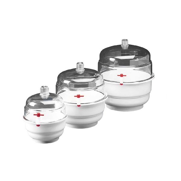 SPACE SAVER Polycarbonate Vacuum Desiccator with White Polypropylene Bottom, 0.09 cubic feet
