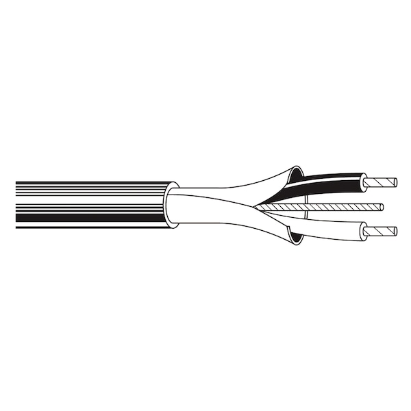 Multi-Conductor Cable, TNC, 22 AWG, 2 C, Black, PVC, Stranded, 300V AC, Indoor, 5000 ft