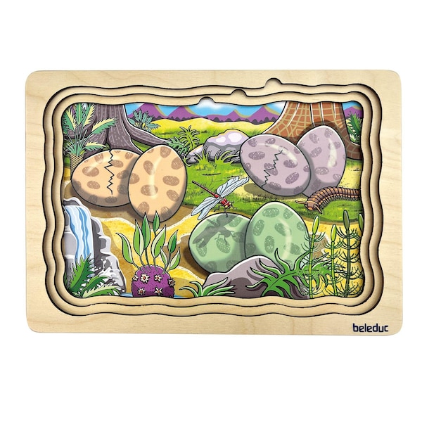 - With this exciting puzzle children can discover the world of the dinosaurs. What do dinos eat and how do they hatch from their eggs? Children learn all these topics in a playful way.