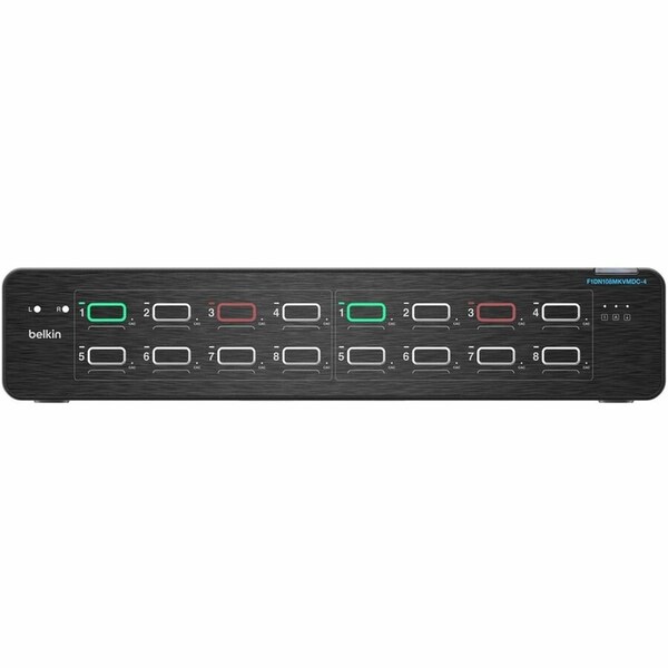 Belkin 8:2 DisplayPort DuoClave Secure KVM with CAC , 12V, 4.0A DC power supply with worldwide mains connectors for NA, EU, UK, ANZ , Port naming labels , Pre-deployment Checklist, Quick Start Guide and compliance documentation