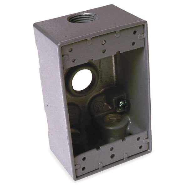 Electrical Box, Box Type Single Gang, Number of Gangs 1, Capacity 16.5 cu in, Material Aluminum, Color Gray, Standards CSA, UL Listed