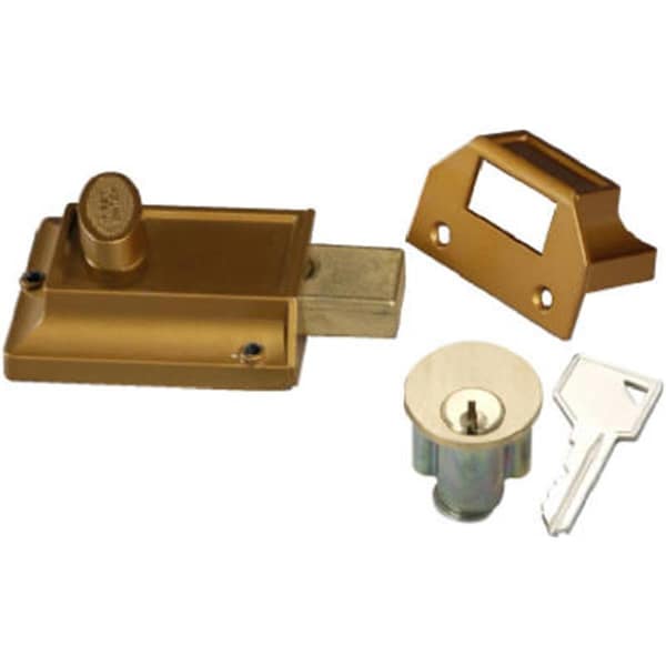 Features --Night Bolt -Hold Open Feature -5 Pin Tumbler Locking Cylinder -1-1/4 in. Bore Required -Ma Brass -Uses True Value Keyblank No. 321-067 Or Ilco Keyblank No. 182-550. -Material - Brass -Dimension - 6.5 x 6.13 x 2.75 in. -Item Weight - 1.05 lbs.
