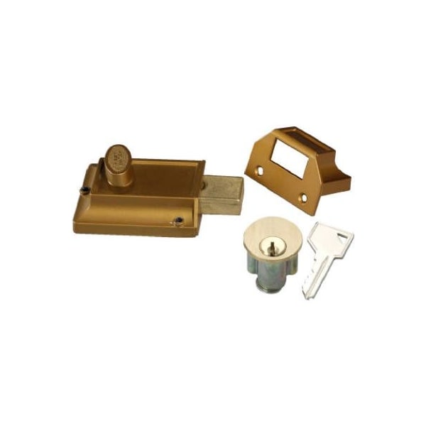 Brass, Night Bolt, Hold Open Feature, 5 Pin Tumbler Locking Cylinder, 114 Bore Required, Brass, Uses True Value Keyblank 321067 Or Ilco Keyblank 182550