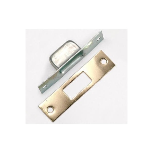 Zinc Brass Plated Steel Security Box Strike Face Plate, Mortising Required, Screws At Base Of Box Strike Secure To 2 x 4 Framing For Added Security
