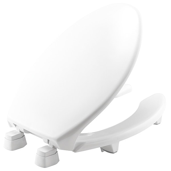 Toilet Seat, For Bowl Shape Elongated, Toilet Seat Type Lift, Front Type Open, Includes Cover Cover Included, Color White, Hinge Material Plastic, Stainless Steel, Hinge Design External Check, Seat Height 3 1/4 in, Bolt to Seat Front 18 9/16 in