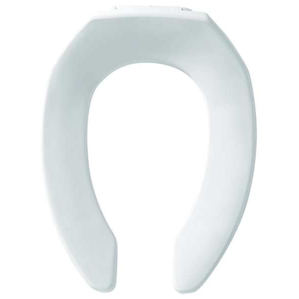 Toilet Seat, For Bowl Shape Elongated, Toilet Seat Type Standard, Front Type Open, Includes Cover Cover Not Included, Color White, Hinge Material Plastic, Stainless Steel, Hinge Design Self-Sustaining Check, Seat Height 2 3/8 in, Bolt to Seat Front 18 9/16 in