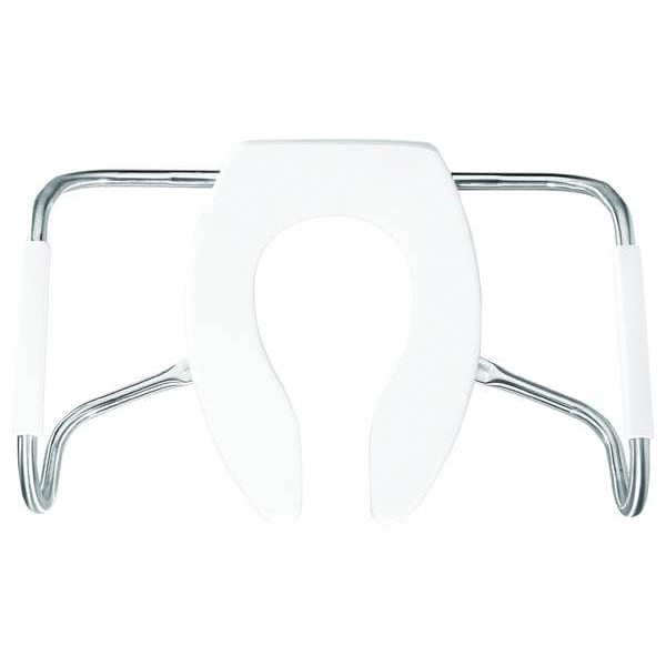 Toilet Seat, For Bowl Shape Elongated, Toilet Seat Type Safety Arm, Front Type Open, Includes Cover Cover Not Included, Color White, Hinge Material Plastic, Stainless Steel, Hinge Design External Check, Seat Height 2 5/8 in, Bolt to Seat Front 18 7/16 in