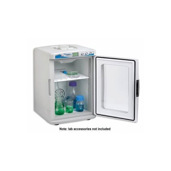 With digital temperature control, the MyTemp incubators provide convenient set and walk away operation, eliminating the need for external thermometers and repetitive fine tuning of an analog control knob. Simply choose the desired temperature and the incubator immediately begins to heat up (or cool down, depending on model) while accurately monitoring the chamber temperature and conveniently displaying the temperature in real time on the large LED control panel. Despite a modest footprint of 14.5 x 13", the MyTemp incubators feature large internal chambers, capable of storing flasks and bottles up to 2 liter. In addition, the incubators include two adjustable/removeable shelves for increased capacity. Units feature Peltier chip with temperature sensor.