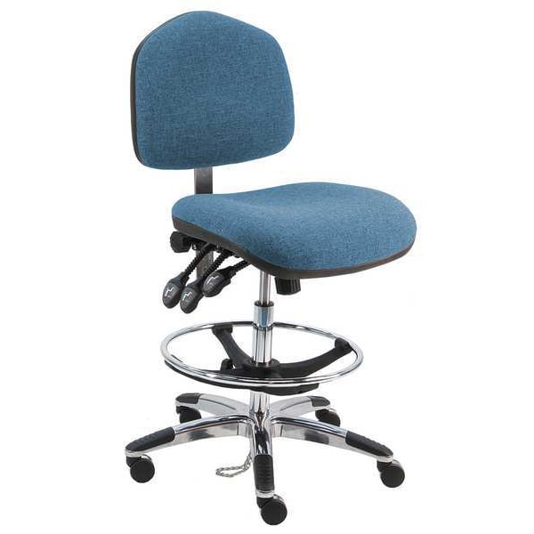 Drafting Chair, Adjustable Arms Not Applicable, Overall Width 21 1/2 in, Overall Depth 19 in, Maximum Seat Height 35 in, Maximum Overall Height 34 1/2 in, Seat Color Blue, Frame Color Chrome, Seat Thickness 2 1/2 in, Back Color Blue, Seat Depth 19 in, Seat Width 21 1/2 in, Seat Material Fabric, Back Material Fabric, Frame Material Aluminum, Number of Arms 0, Weight Capacity 450 lb, Tilt Configuration Basic Tilt, Series Washington, Style Classification Not Applicable, Minimum Seat Height 25 in