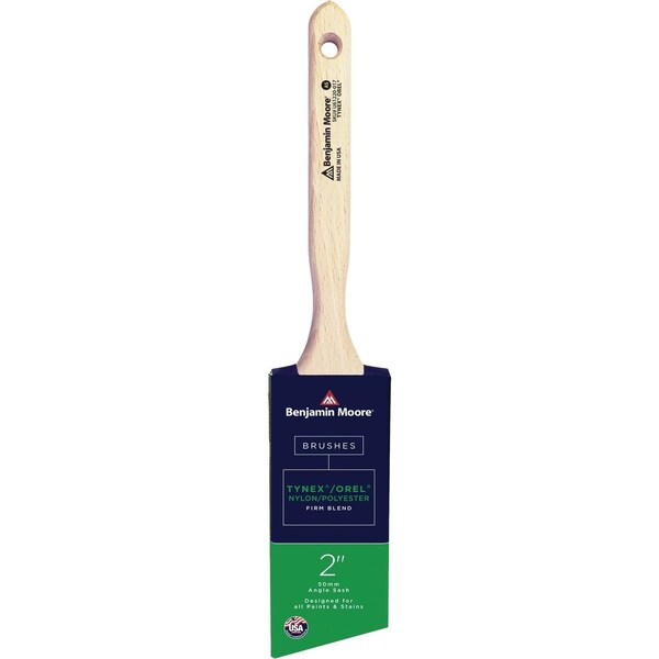 Benjamin Moore Firm Blend Tynex/Orel Angle Sash Paint Brush. Use with all paints and stains.