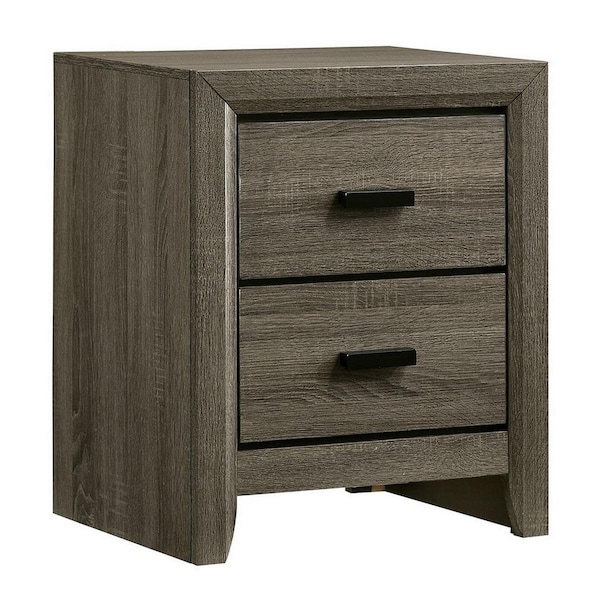 24 in. 2 Drawer Wooden Nightstand with Finger Pulls, Brown