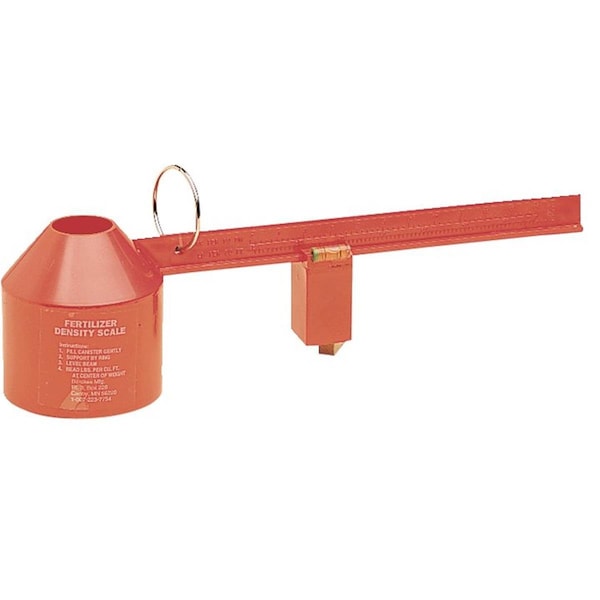 This portable, accurate Fertilizer Density Scale helps you set fertilizing equipment to the correct weight per cubic foot. USDA approved. 15.5"L. To use: Fill grain canister but do not pack. Level grain to opening of canister. Support scale by ring. Adjust weight until level. Read the test weight.