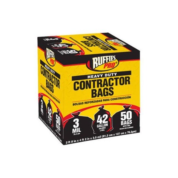 50 Pack, 42 Gallon, 32 x 50, Black, Heavy Duty, 3 Mil, Ruffies Pro, Contractor Bag, Great For Construction Commercial Use