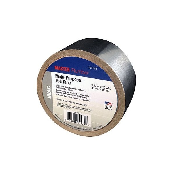 Master Plumber, 189 x 10 YD, 48 mm x 91 m, Foil Tape, Provides A Superior Water Vapor Barrier For Sealing Seaming Applications, Excellent Adhesion On Metal Box Ducts, Exchange Boxes Other High Temperature Fluctuation Applications, High Tack RubberBased Adhesive Forms Instant Bond To Metal, Plastic, Fiberglass Other Composite Surfaces, Heavy Duty Foil Backing Conforms To Curves Corners For A Tight Seal, Excellent Indoor Outdoor Performance