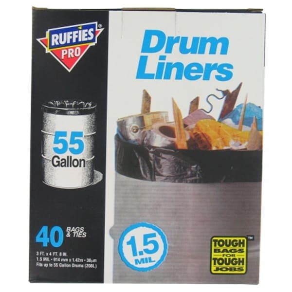 Drum liner Tough Bags For Tough Jobs 1.5 MIL 55 gallon 40 bags and ties Length: 9.5 Width: 5 Height: 10