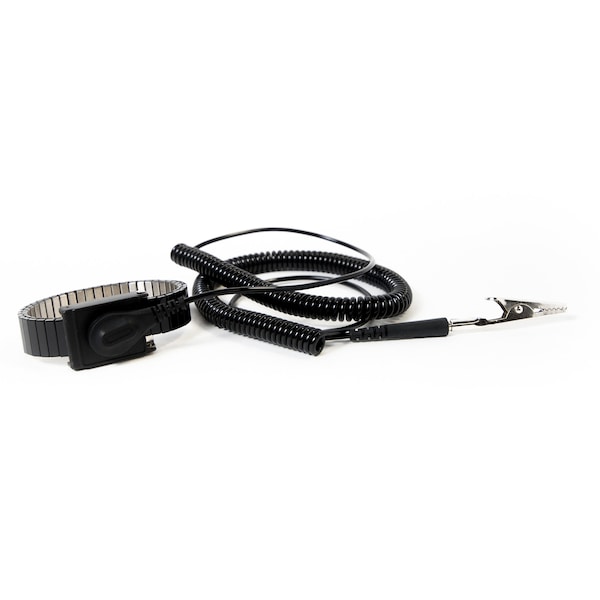 ESD Anti-Static Metal Wrist Strap with 12' Cord, 1 Megohm Resistor, 4mm Snap, Black