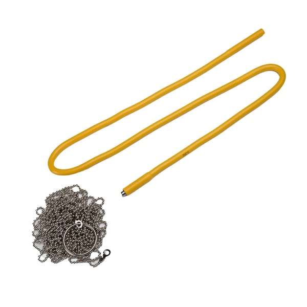 This comes with a 10 foot chain and is a magnetic retriever to fish wires in uninsulated walls.