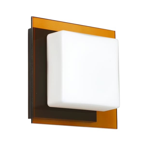 Alex has a simple, contemporary design that features handcrafted Opal glass, available with flat glass trim. This modern wall light offers flexible design potential for a variety of bath/vanity decorating schemes. Mount horizontally or vertically. ADA-Compliant. Our Trans-Armagnac colored blown glass complements the soft white Opal cased glass, which can suit any classic or modern decor. Opal has a very tranquil glow that is pleasing in appearance, as the Trans-Armagnac glass sparkles with the accents from that glow. The smooth satin finish on the opal’s outer layer is a result of an extensive etching process. This blown glass combination is handcrafted by a skilled artisan, utilizing century-old techniques passed down from generation to generation. The sconce fixture is equipped with plated steel square lamp holders mounted to linear rectangular tubing, and a low profile square canopy cover. These stylish and functional luminaries are offered in a beautiful brushed Bronze finish.