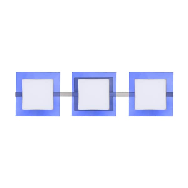 Alex Vanity, Opal/Blue, Satin Nickel Finish, 3x5W LED