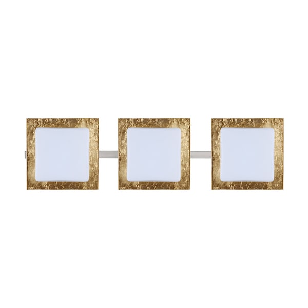 Alex Vanity, Opal/Gold Foil, Satin Nickel Finish, 3x50W Halogen