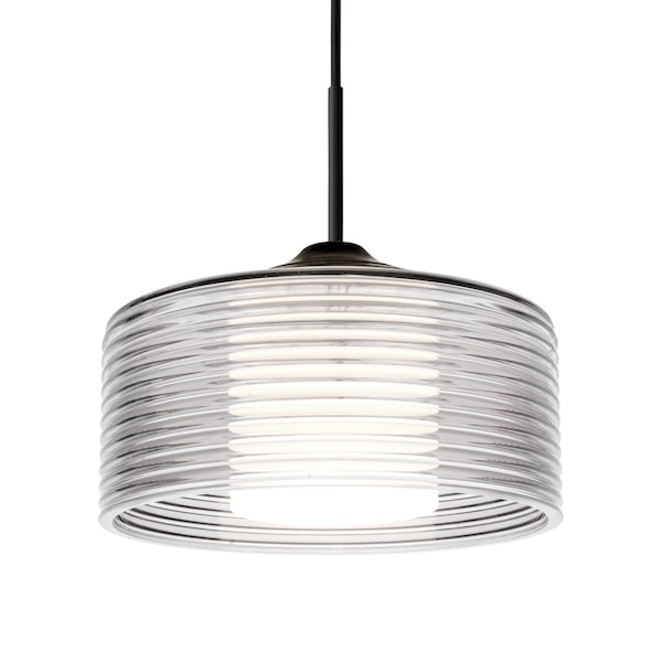 The Belu pendant features a ribbed drum glass shade that adds a touch of elegance and sophistication to any space. The glass shade has horizontal ribbed detailing and a inner white acrylic shield, which creates a beautiful and distinctive visual effect when illuminated. The cord pendant fixture is equipped with a 10ft SVT cordset and a low profile flat monopoint canopy. These stylish and functional luminaries are offered in a beautiful Black finish.