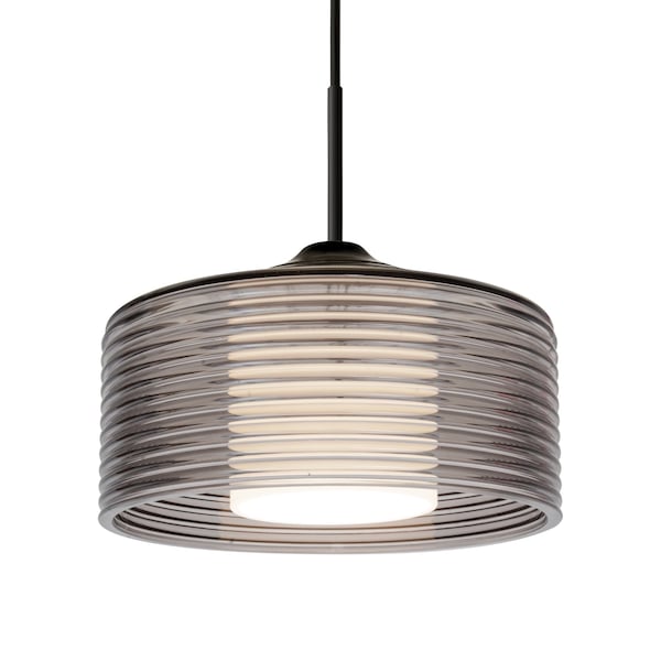 The Belu pendant features a ribbed drum glass shade that adds a touch of elegance and sophistication to any space. The glass shade has horizontal ribbed detailing and a inner white acrylic shield, which creates a beautiful and distinctive visual effect when illuminated. The cord pendant fixture is equipped with a 10ft SVT cordset and a low profile flat monopoint canopy. These stylish and functional luminaries are offered in a beautiful Black finish.