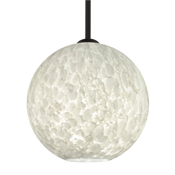 The globe-shaped Coco is a blown glass with a neutral decor and classic shape that blends gracefully into all environments. Our Cocoon glass is a frosted glass with interesting threads of opaque white swirling throughout. This decor is full of textured and creates a point of interest to any room. When lit this glass features a dimensional effect from the whites lines that are interlaced at various levels. The smooth satin finish on the clear outer layer is a result of an extensive etching process, with the texture of the subtle brushing. This blown glass is handcrafted by a skilled artisan, utilizing century-old techniques passed down from generation to generation. Each piece of this decor has its own artistic nature that can be individually appreciated The stem pendant fixture is equipped with an adjustable telescoping section, 4 connectable stem sections 3in, 6in, 12in, and 18in and low Profile flat monopoint canopy. These stylish and functional luminaries are offered in a beautiful Black finish.