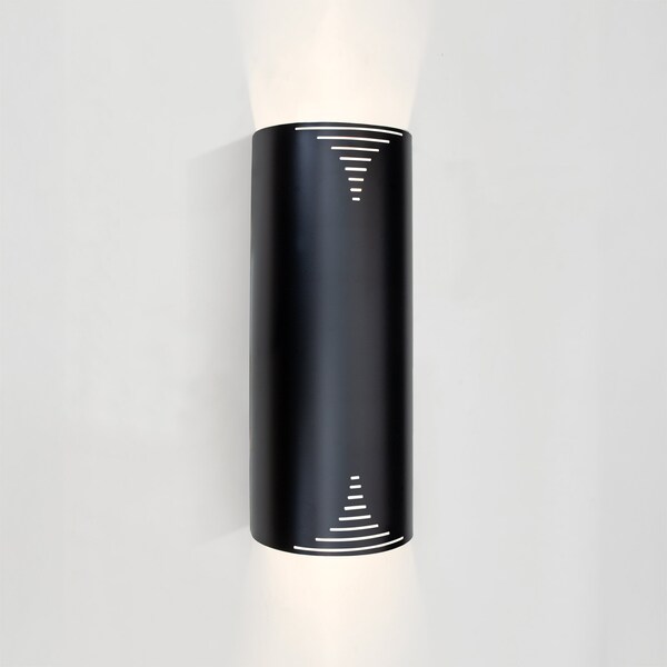 Edge is an exceptional metal half-cylinder wall sconce available in White or Black finish. Its exquisite design features segmented cutouts creating a captivating visual display when illuminated. The fixtures open-ended structure allows for both top and bottom lighting, casting a soft and inviting glow that complements any space with style and sophistication.