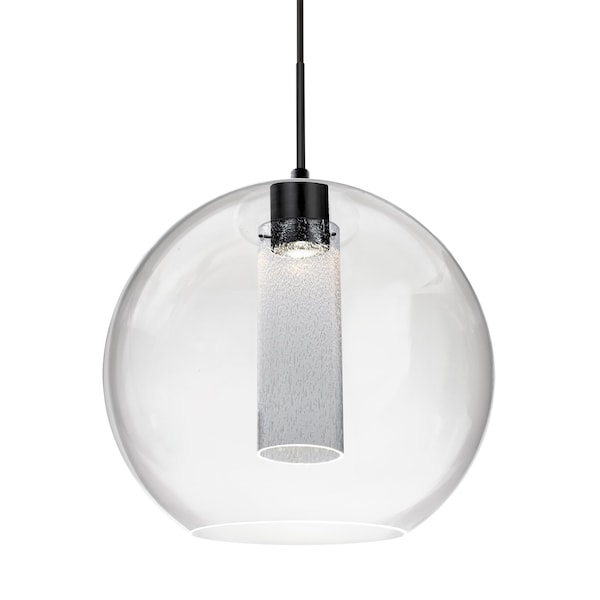 The Eli Pendant features a double layer design that creates a captivating visual effect. A clear outer globe encases a unique inner clear bubble glass. Light dances and refracts through the textured bubbles, casting delightful patterns and adding a touch of whimsy to your space. The cord pendant fixture is equipped with a 10ft SVT cordset and a low profile flat monopoint canopy. These stylish and functional luminaries are offered in a beautiful Black finish.