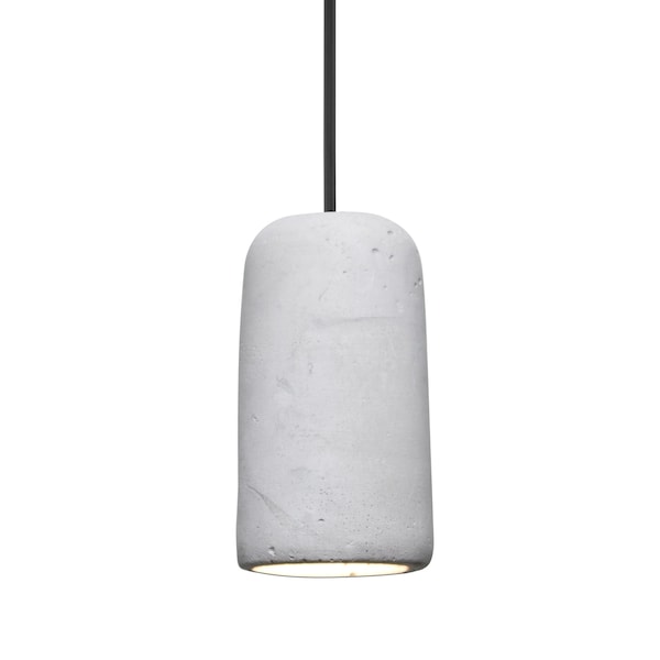 Our diminutive Glide natural mini pendant is equipped with a cement-based tubular shade, while concealing a focused light source for effective task lighting. Produced from natural elements and industrially inspired, this pendant offers a look that will easily merge into the recent urban decorating trend The 12V cord pendant fixture is equipped with a 10ft braided coaxial cord with teflon jacket and a low profile flat monopoint canopy. These stylish and functional luminaries are offered in a beautiful Black finish.