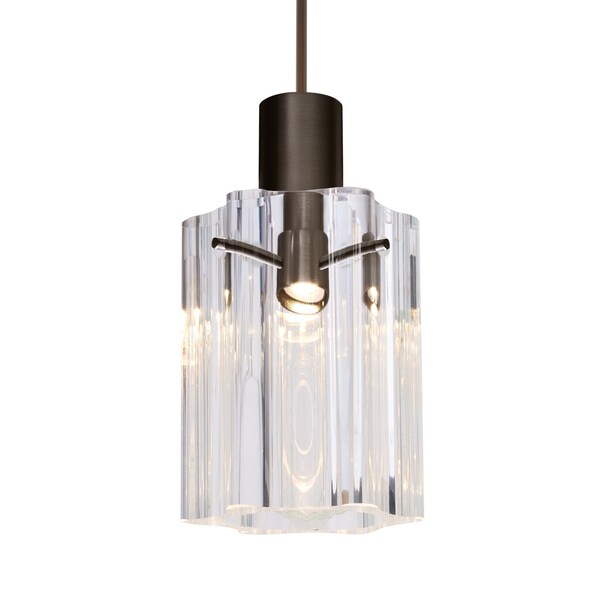 The Ice showcases a mesmerizing clear wavy cylinder glass that adds a touch of enchantment to any space. The light source shimmering in the center casts a captivating play of lights, beautifully accentuating the wavy design of the glass. The result is a stunning visual display that creates an ambiance of elegance and sophistication. The 12V cord pendant fixture is equipped with a 10ft braided coaxial cord with teflon jacket and a low profile flat monopoint canopy. These stylish and functional luminaries are offered in a beautiful brushed Bronze finish.
