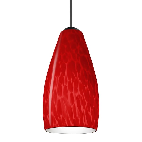 The Karli features a softly radiused glass, that will gracefully blend into almost any decorating theme. Our Red Cloud glass is full of floating, splashes of red tones over cased red that resembles a watercolor painting when illuminated. This combination of color is crisp and timeless. This decor is created by rolling molten glass in small bits of red hues called frit. The result is a multi-layered blown glass, where frit color is nestled between an opal inner layer and a clear glossy outer layer. The handcrafted touch of a skilled artisan, utilizing century-old techniques passed down from generation to generation, creates variations in color and design that are to be appreciated. The 12V cord pendant fixture is equipped with a 10ft braided coaxial cord with teflon jacket and a low profile flat monopoint canopy. These stylish and functional luminaries are offered in a beautiful Black finish.