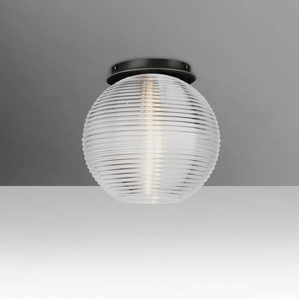 The Kristall is a transparent globe shape, with distinctive ridges, that fits gracefully into contemporary spaces. The clear blown glass is contemporary yet timeless, and will suit any classic or modern decor. When lit, the clear glass shimmers and sparkles with the accents from the light source. This blown glass combination is handcrafted by a skilled artisan, utilizing century-old techniques passed down from generation to generation. The semi-flush fixture is equipped with a socket on a low profile flat canopy, with machined and plated glassholder hardware. These stylish and functional luminaries are offered in a beautiful Black finish.
