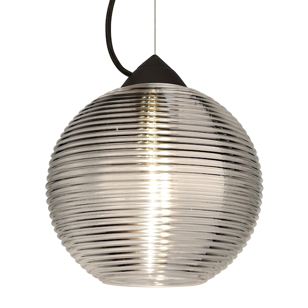 The Kristall is a transparent globe shape, with distinctive ridges, that fits gracefully into contemporary spaces. Our Trans-Smoke glass is a colored transparent blown glass. The seductive glow has a low key harmonious display that exudes a warm mood. When lit the glass is vitalizing as well as stylish. This blown glass is handcrafted by a skilled artisan, utilizing century-old techniques passed down from generation to generation. The cable pendant fixture is equipped with a 10ft silver aircraft cable and AWM cordset, and a dome monopoint canopy. These stylish and functional luminaries are offered in a beautiful Black finish.