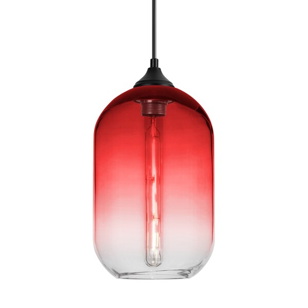 The Omega 12 Pendant is a transitional design composed of a corded transparent red glass cylinder pendant, with an interesting gradient pattern from top to bottom of the glass. The dramatic play of light through the gradient color is a sophisicated affect, along with the modest display of the lamp filament behind the glass. The cord pendant fixture is equipped with a 10ft SVT cordset and a low profile flat monopoint canopy, suitable for usage outdoors under covered ceiling. These stylish and functional luminaries are offered in a beautiful Black finish.