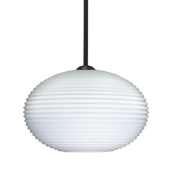 Besa Pape 10 Pendant, Opal Ribbed, Black Finish, 1x 100W MAX E26 Base