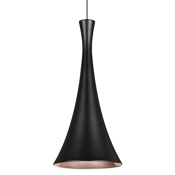 Our Rondo metal shade LED Pendant is a contemporary aluminum design, with semi-specular alzak reflector for shielding the light source. The sleek trumpet-shaped design, along with the strong burst of focused downlight, makes this pendant ideal for task oriented applications in modern environments. The 12V cord pendant fixture is equipped with a 10ft braided coaxial cord with teflon jacket and a low profile flat monopoint canopy. These stylish and functional luminaries are offered in a beautiful Black finish.
