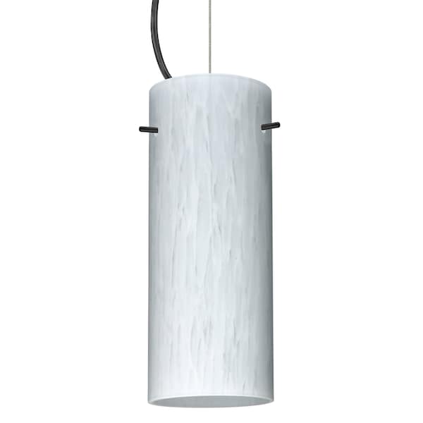 Stilo 10 is a classic open-ended cylinder of handcrafted glass, a shape that will stand the test of time. Our Carrera glass is a classic yet modern decor that gives off a soft white light. Clear molten glass is rolled in alabaster powder like frit, and then blown into shape with a semi-clear frosted white inner finish. This decor is created by rolling molten glass in small bits of white called frit. The smooth satin finish on the clear outer layer is a result of an extensive etching process. This blown glass is handcrafted by a skilled artisan, utilizing century-old techniques passed down from generation to generation. Each piece of this decor has its own artistic nature that can be individually appreciated. The cable pendant fixture is equipped with a 10ft silver aircraft cable and AWM cordset, and a dome monopoint canopy. These stylish and functional luminaries are offered in a beautiful Black finish.