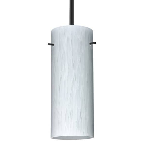 Stilo 10 is a classic open-ended cylinder of handcrafted glass, a shape that will stand the test of time. Our Carrera glass is a classic yet modern decor that gives off a soft white light. Clear molten glass is rolled in alabaster powder like frit, and then blown into shape with a semi-clear frosted white inner finish. This decor is created by rolling molten glass in small bits of white called frit. The smooth satin finish on the clear outer layer is a result of an extensive etching process. This blown glass is handcrafted by a skilled artisan, utilizing century-old techniques passed down from generation to generation. Each piece of this decor has its own artistic nature that can be individually appreciated. The stem pendant fixture is equipped with an adjustable telescoping section, 4 connectable stem sections 3in, 6in, 12in, and 18in and low Profile flat monopoint canopy. These stylish and functional luminaries are offered in a beautiful Black finish.