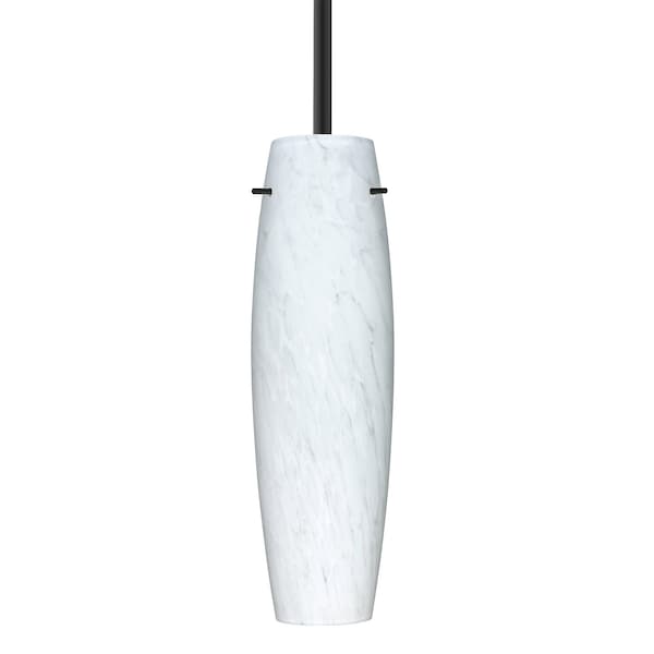 The Tu Tu is a slender yet shapely handcrafted glass with a open top and bottom. Our Opal glass is a soft white cased glass that can suit any classic or modern decor. Opal has a very tranquil glow that is pleasing in appearance. The smooth satin finish on the clear outer layer is a result of an extensive etching process. This blown glass is handcrafted by a skilled artisan, utilizing century-old techniques passed down from generation to generation. The stem pendant fixture is equipped with an adjustable telescoping section, 4 connectable stem sections 3in, 6in, 12in, and 18in and low Profile flat monopoint canopy. These stylish and functional luminaries are offered in a beautiful Black finish.