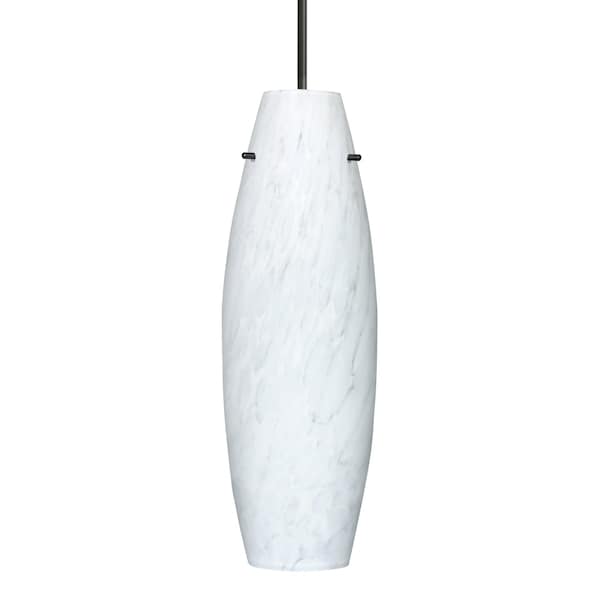 The Suzi 18 is a slender yet shapely handcrafted glass with a open top and bottom. Our Carrera glass is a classic yet modern decor that gives off a soft white light. Clear molten glass is rolled in alabaster powder like frit, and then blown into shape with a semi-clear frosted white inner finish. This decor is created by rolling molten glass in small bits of white called frit. The smooth satin finish on the clear outer layer is a result of an extensive etching process. This blown glass is handcrafted by a skilled artisan, utilizing century-old techniques passed down from generation to generation. Each piece of this decor has its own artistic nature that can be individually appreciated. The cord pendant fixture is equipped with a 10ft SVT cordset and a low profile flat monopoint canopy. These stylish and functional luminaries are offered in a beautiful Black finish.