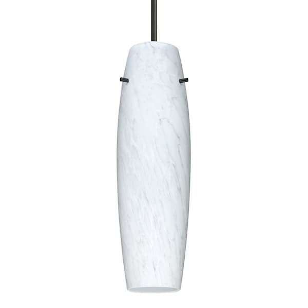 The Suzi is a slender yet shapely handcrafted glass with a open top and bottom. Our Carrera glass is a classic yet modern decor that gives off a soft white light. Clear molten glass is rolled in alabaster powder like frit, and then blown into shape with a semi-clear frosted white inner finish. This decor is created by rolling molten glass in small bits of white called frit. The smooth satin finish on the clear outer layer is a result of an extensive etching process. This blown glass is handcrafted by a skilled artisan, utilizing century-old techniques passed down from generation to generation. Each piece of this decor has its own artistic nature that can be individually appreciated. The cord pendant fixture is equipped with a 10ft SVT cordset and a low profile flat monopoint canopy. These stylish and functional luminaries are offered in a beautiful Black finish.