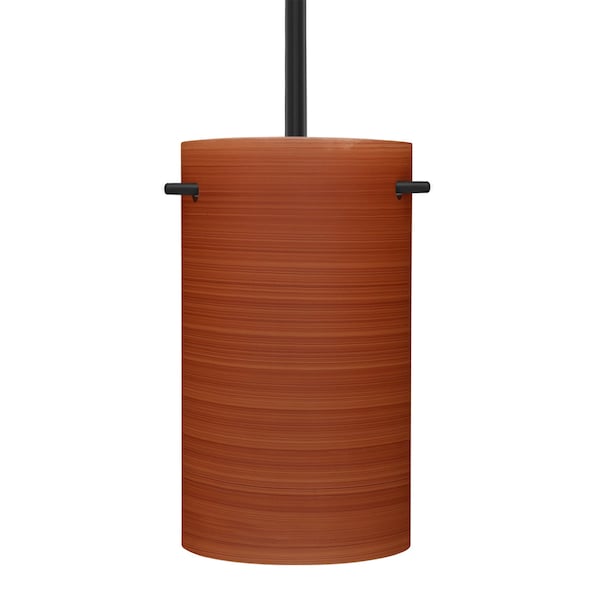Tamburo is a classic open-ended cylinder of handcrafted glass, a shape that will stand the test of time. Our Cherry glass is a soft off-white cased glass that is handcrafted with spiraling strokes of dark red, emphasizing the subtle brush pattern. The reddish rippled design is subdued and harmonious. Unlit, it appears as simply a textured surface like wood grain, but when lit the texture comes alive. The smooth satin finish on the clear outer layer is a result of an extensive etching process, with the texture of the subtle brushing. This blown glass is handcrafted by a skilled artisan, utilizing century-old techniques passed down from generation to generation. The stem pendant fixture is equipped with an adjustable telescoping section, 4 connectable stem sections 3in, 6in, 12in, and 18in and low Profile flat monopoint canopy. These stylish and functional luminaries are offered in a beautiful Black finish.